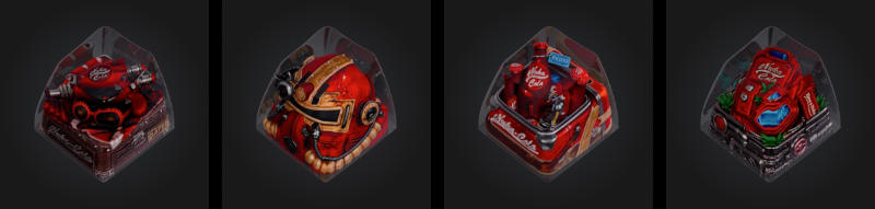 Клавиатура доступна только в американской раскладке и продаётся по цене $299; за $119 можно приобрести набор из 169 колпачков; есть также три особых колпачка, выполненных в виде шлема, распылителя, бутылок и торгового автомата Nuka-Cola — они продаются по $69 за штуку. Настольный коврик размером 90 × 40 × 0,4 см доступен за $49.