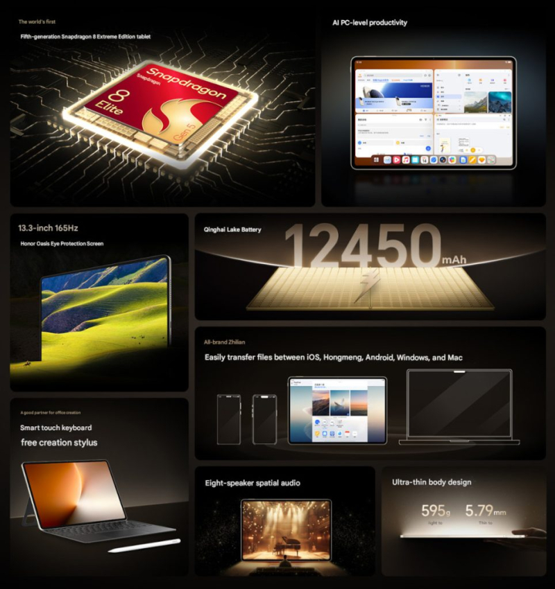 Компания Honor представила в Китае флагманский планшет MagicPad 3 Pro. Новинка предлагает новейшую аппаратную платформу Snapdragon 8 Elite Gen 5, большой и яркий дисплей, ёмкую батарею с быстрой зарядкой и довольно продвинутые для планшета камеры.