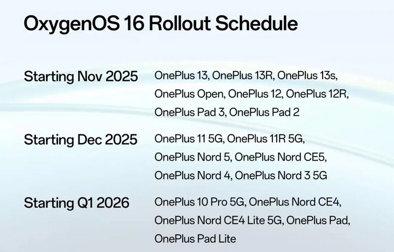 Открытая бета-версия OxygenOS 16 станет доступна уже 17 октября, а официальный релиз состоится одновременно с выходом OnePlus 15, после чего обновление поступит и на более ранние модели устройств. В ноябре свежая платформа появится на смартфонах серий OpenPlus 13 и 12, а также некоторых других. Пользователям OnePlus 11 придётся подождать до декабря, а OnePlus 10 — до первого квартала будущего года.
