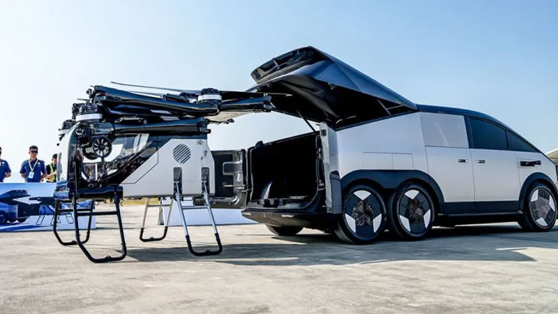 Дочерняя компания XPeng Motors под названием Aridge запустила первую в мире производственную линию автомобилей с летающими модулями. С конвейера завода XPeng в районе Хуанпу (Гуанчжоу) сошёл первый экземпляр Land Carrier — сухопутного авианосца для индивидуального использования. Трёхосный автомобиль занимает стандартное парковочное место, а у него на борту размещён двухместный летающий аппарат с вертикальным взлётом и посадкой.