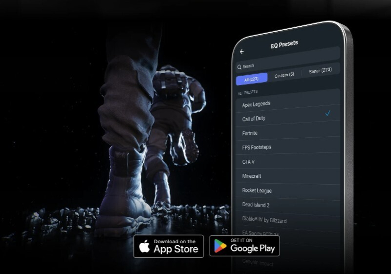 Гарнитура оснащена 40-миллиметровыми динамиками, обладает частотным диапазоном от 20 Гц до 22 кГц, чувствительностью 105 дБ звукового давления, импедансом 36 Ом и поддерживает пространственный звук.